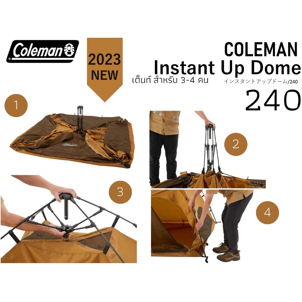 เต็นท์ Coleman® Instant-Up Dome/240 เป็นขนาดที่พอดีสําหรับครอบครัวสามหรือสี่คน ด้วยโครงสร้างแบบสัมผัสเดียวที่สามารถรื้อถอนได้ในเวลาไม่นาน และมีห้องด้านหน้าและด้านหลัง ประตูตาข่าย การระบายอากาศ กระเป๋าตาข่าย ลิ้นชักสายไฟ ที่แขวนโคมไฟ และตัวป้องกันพายุ ตลอดจนหมุด เชือก ค้อน ถุงทราย และกล่องเก็บของ