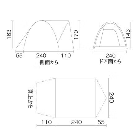 วัสดุ: ผ้าแพรแข็งโพลีเอสเตอร์ fly / 75D (UVPRO, PU กันน้ํา, ซีลตะเข็บ), ผ้าแพรแข็งโพลีเอสเตอร์ด้านใน / 68D, พื้น / โพลีเอสเตอร์ 210D oxford (PU กันน้ํา, ซีลตะเข็บ), เสา / (ฉัน ใน) FRP เส้นผ่านศูนย์กลางประมาณ 9.5 มม. เหล็กเส้นผ่านศูนย์กลางประมาณ 22 มม. (ด้านหน้า) FRP เส้นผ่านศูนย์กลางประมาณ 9.5 มม./11 มม.