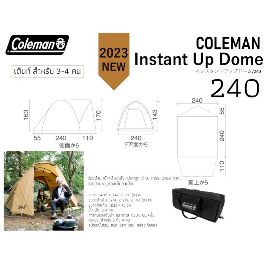ขนาด: เต็นท์ / ประมาณ 405 x 240 x 170 (สูง) ซม. เต็นท์ด้านใน / ประมาณ 240 x 240 x 143 (สูง) ซม.