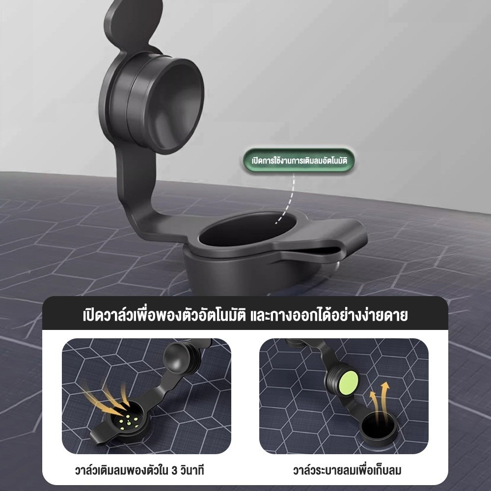 • วาล์วสูบลมสามารถสูบลมได้ภายใน 3 วินาทีและกางออกได้ง่าย